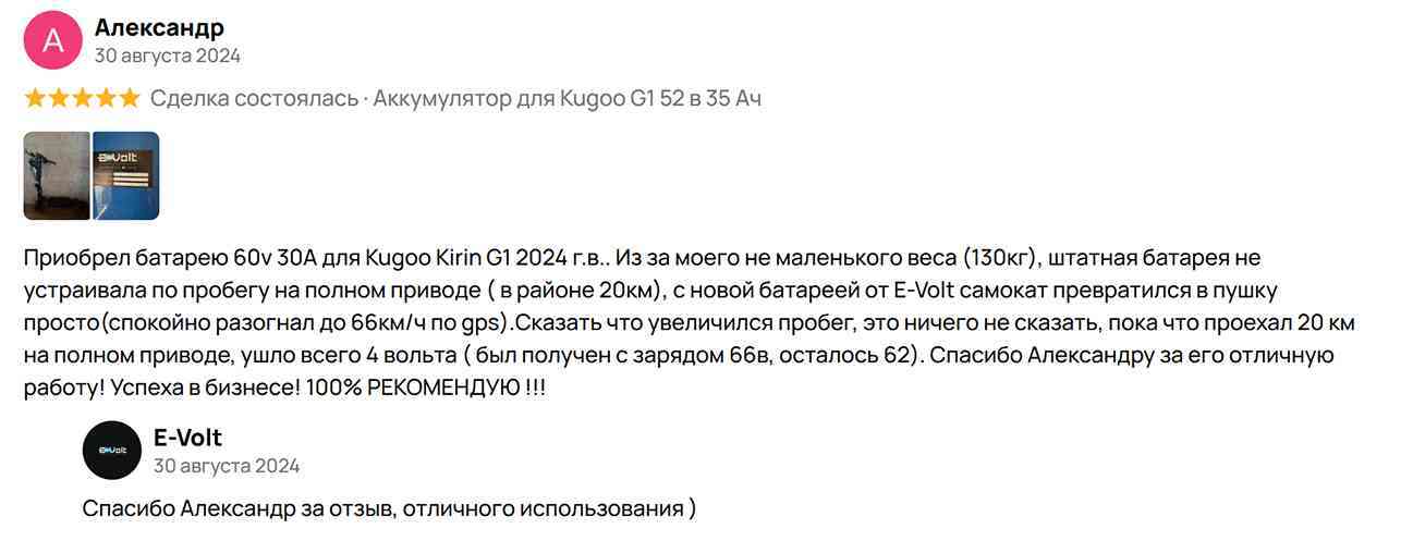 Дальность поездки можно рассчитать исходя из вашего стиля езды и веса, к примеру вы проезжали на своем аккумуляторе когда он был новый (исправен) 50 км, при ёмкости 21 Ач. Наш аккумулятор имеет емкость 35 Ач. И так считаем. 50 км / 21 = 2,381 км . 2.381 * 35 Ач = 83.3 км вы проедите, так же можно посчитать с любой емкостью аккумулятора